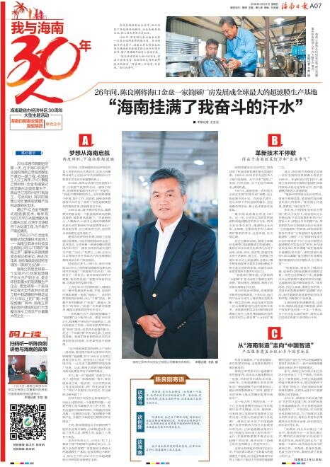 26年间,陈良刚将海口金盘一家简陋厂房发展成全球最大的超滤膜生产基地