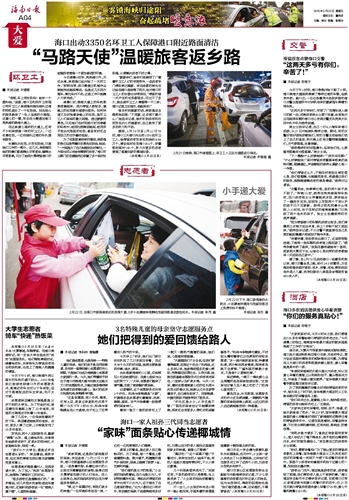 据悉,2月19日至2月22日18时,海口三大港口共出动3350名环卫工人,给滞留旅客发放垃圾袋约4.44万个,增设临时垃圾桶1050个,安置移动厕所145个,努力为更多的旅客营造了温暖如家的椰城印象。