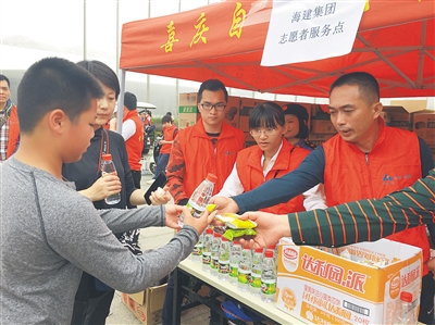 2月22日,海建集团志愿者们在为滞留游客提供志愿服务。 本报记者 张杰 通讯员 吴荣融 秦天 摄