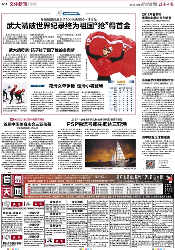 海南日报 文体新闻综合 011 2018-02-231 2018年02月23日 星期五