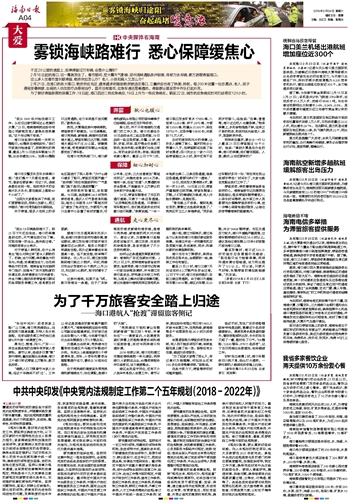 海南日报 雾锁海峡归途阻 奋起疏堵暖意浓 004 2018-02-241 2018年02月24日 星期六