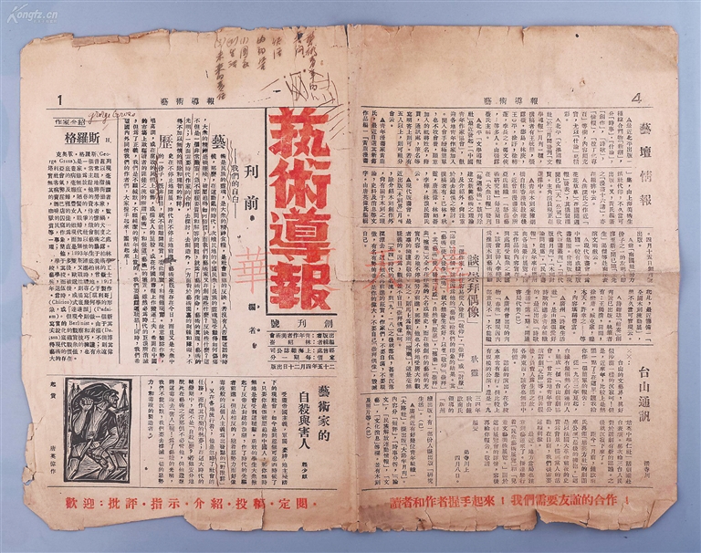 我原以为年代不远,搜查史料并非难事,但由于线索稀少,结果除了只言片语的回忆外,具体细节几乎无迹可寻。甚至我到林绍仑生活过的地方寻访,也仅听到点虚实参杂的传说。我印象很深的是,在向有“海南岛文学开拓者”之称的老诗人邝海星请教时,邝老眼睛突然一亮,大概他已很久没有听说这个人了,但老人所知也不多,只告诉我他知道林绍仑是在上学时看过一本画刊,“老师说编辑是海南人,是共产党。”云云。大约是2005年底,好友王家儒在撰写《海南美术巡礼》时,我曾专门向他介绍过林绍仑的情况,想他利用编撰之机进行寻查,但直到成书也未发现新的史实。直到前两年见到一批青年艺术社的资料,才使我对林绍仑的生活有了新的较为全面的突破性认识,尤为惊喜的是,通过这些资料,我发现了他的另外两个身份——诗人和文艺评论家。这不禁令我倍感振奋,因为此前我只听海南大学教授王春煜评介过琼籍现代诗人征军,没想到就在同一个战壕里,还有一位同乡也在为着民族的独立、自由和进步在奋笔呐喊,而且与鲁迅有着直接的联系,这在海南现代文艺史上也许是唯一的。