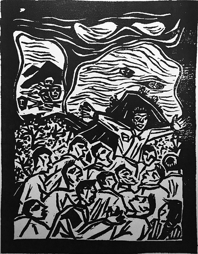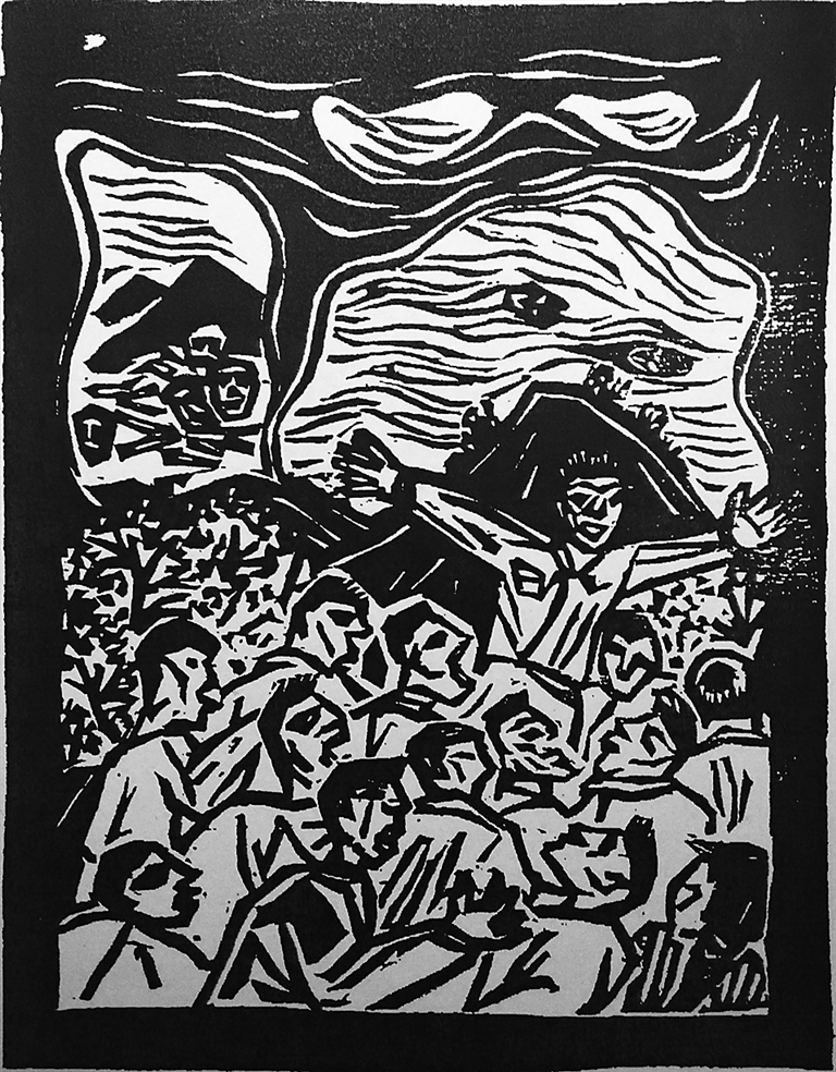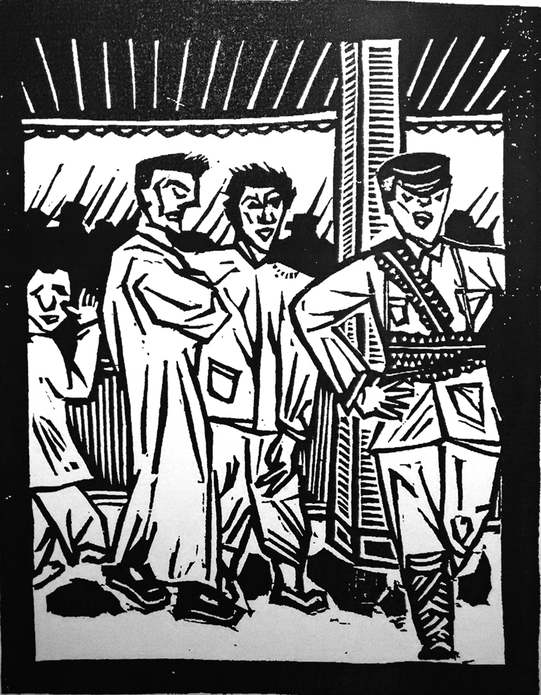 响应时代的召唤,投身到捍卫民族生存的前列,是那一代有志青年的自觉选择,而在经历过大革命洗礼的林绍仑心里,为独立自由而斗争更是他责无旁贷的现实担当,“青春我虽不可惜它悄悄地在这样的人间消逝,/只是,满腔的义愤,燥急……/就占据了整个心田。/……/可是,看看淋漓的腥血流染满地鲜鲜,/你的心又怎能安宁?!”因此,面对外敌的豺狼野心和嚣张气焰,他无所畏惧地写下了《血书》:“我今朝,已把自己的生命决定了,/很坚决的,我情愿就战死在沙场!/……/生命也是可贵的,只是,有什么可惜呢?/为着将来的光芒!”令人悲愤的是,林绍仑真的就战死在沙场!据我所知,牺牲在抗日前线的左翼木刻家中有好多,但和鲁迅有交集的恐怕也就林绍仑一人。鲁迅认为:“可以宝贵的文字,是用生命的一部分,或全部换来的东西,非身经战斗的战士,不能写出。”联想到王春煜教授对征军的评介,我觉得如果说征军是“以生命谱写诗篇”,那么林绍仑就是在用热血铺就诗章。