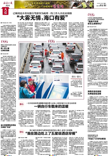 海南日报 雾锁海峡归途阻 奋起疏堵暖意浓 004 2018-02-261 2018年02月26日 星期一