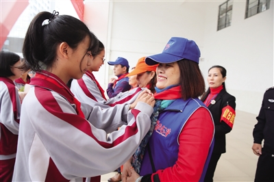2月26日上午,海口市玉沙实验学校开展以“垃圾分类,绿动校园——将环保进行到底”为主题的开学第一课活动。学生们进行倡导垃圾分类横幅签名、主题班课活动,并向参与“抗雾保春运”的环卫工人、志愿者代表献上红领巾和鲜花,表达敬意。