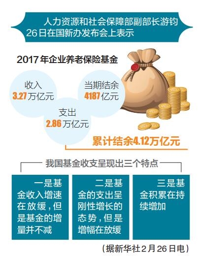 2017年企业养老保险基金累计结余4.12万亿元