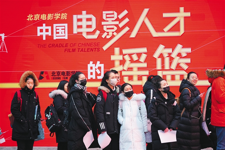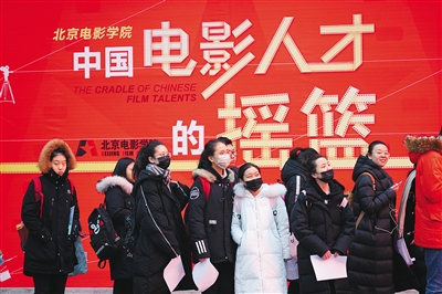 2月27日,2018年北京电影学院艺考拉开帷幕。今年该校共有14个院系艺术类专业招生,本科计划招生490人,同比去年减少11人;高职计划招生50人,同比去年减少12人。2018年北京电影学院总报考人次达45077人次,同比增长18.17%,再创历史新高。2018年该校录取难度最高的前五名专业分别是:戏剧影视导演(电影导演)、表演、戏剧影视文学(创意策划)、戏剧影视文学(剧作)和广播电视编导。图为考生在等候进入考场。 新华社记者 沈伯韩 摄