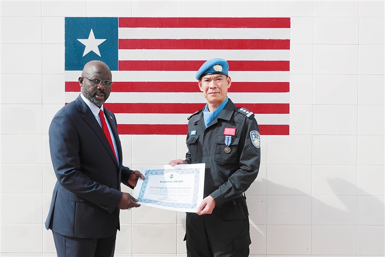 利比里亚授予中国 第五支维和警察防暴队国家奖