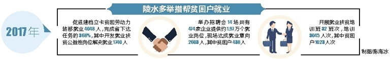 据统计,2017年,陵水多渠道促进建档立卡贫困劳动力转移就业4048人,完成省下达任务的368%,其中乡镇通过县财政社会发展资金开发就业扶贫公益性岗位解决就业1740人。