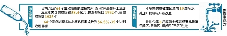 目前,我省64个重点治理的城镇内河(湖)水体全部开工治理,近三年累计完成投资58.4亿元,排查排污口1992个,已完成治理1025个。64个重点治理水体水质达标率提升到56.5%,35个达到治理目标。列入全国城市黑臭水体名单的29个水体,28个已基本消除黑臭现象,消除率96.5%。