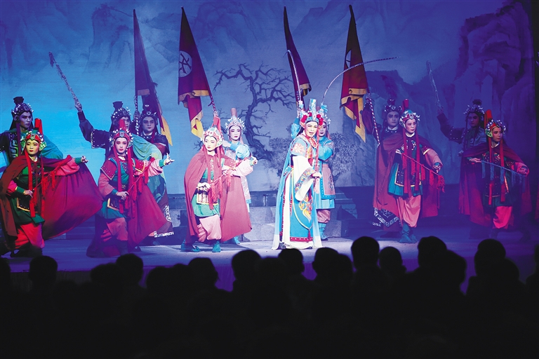 据介绍,《护国皇后》由著名琼剧导演李明玉执导,舞美设计专门聘请了广东粤剧院舞美设计师陈昊桥担任,是琼山琼剧演艺公司在服装、舞美上投入最大的一台新编大戏。该剧自2016年首演以来赢得广泛好评,至今仍是琼北戏迷绑戏时最爱点的剧目之一。该剧由许秀菊、何启蛟、杨杰、周杰斌、姚彩虹、姚浪主演,已凭借演员娴熟的演技和优秀的舞台布景、服装设计和灯光制作,在“记得住乡愁”2017年第二届大致坡琼剧文化节琼剧大赛中夺得专业组一等奖。
