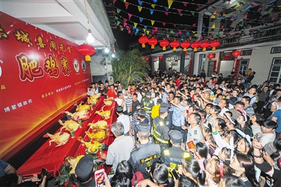今晚,上万民众在琼海市博鳌镇乐城村闹元宵,文艺晚会、赛肥鸡、游灯、琼剧演出等本地传统民俗活动一场接一场,十分热闹。
