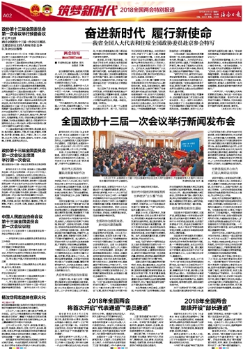海南日报 筑梦新时代2018全国两会特别报道 002 2018-03-031 2018年03月03日 星期六
