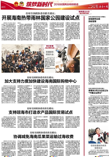 海南日报 筑梦新时代2018全国两会特别报道 003 2018-03-041 2018年03月04日 星期日
