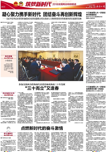 | 海南日报 筑梦新时代2018全国两会特别报道 003 2018-03-051 2018年03月05日 星期一 |