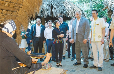 这是图普六世国王第一次到海南,一踏上这片土地,他便被这里的气候、风景和人文吸引住了,“不只是气候相似,就连海南黎族的文身,我们汤加也有,不过纹样不同;还有海南黎族人民跳的竹竿舞,我们小时候也常跳!”
