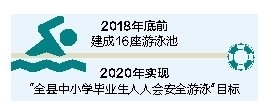 从2018年开始,琼中将按照每年中小学生达标数量以及人均400元的标准统筹安排游泳教育教学经费,用于开展中小学生游泳教育工作以及游泳教育事业发展。到2020年,实现“全县中小学毕业生人人会安全游泳”的目标,让中小学生游泳教育进入常态化,形成体系健全、制度完善、教体结合、充满活力的中小学生游泳教育发展格局。