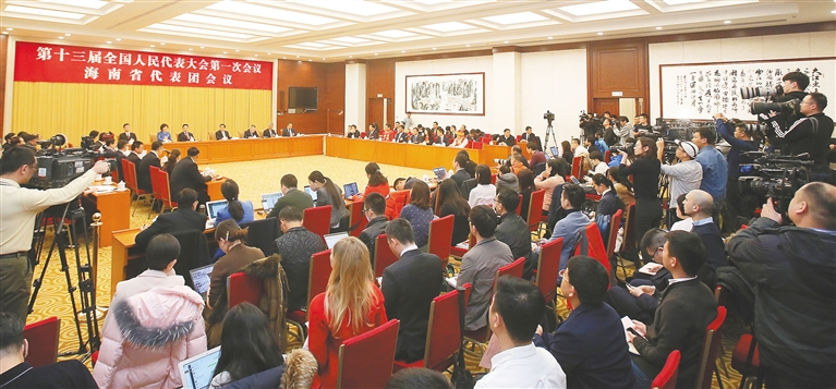 “作为中国最大的经济特区,海南在新一轮改革开放中有哪些新思路、新举措?”从第一个问题开始,“而立之年”的海南就承载着人们更多的关注和期待。随后,记者们先后围绕干部和人才队伍建设、房地产市场调控、医疗旅游产业发展、环保督察整改、农民增收、进一步加强生态文明建设等向代表提问。