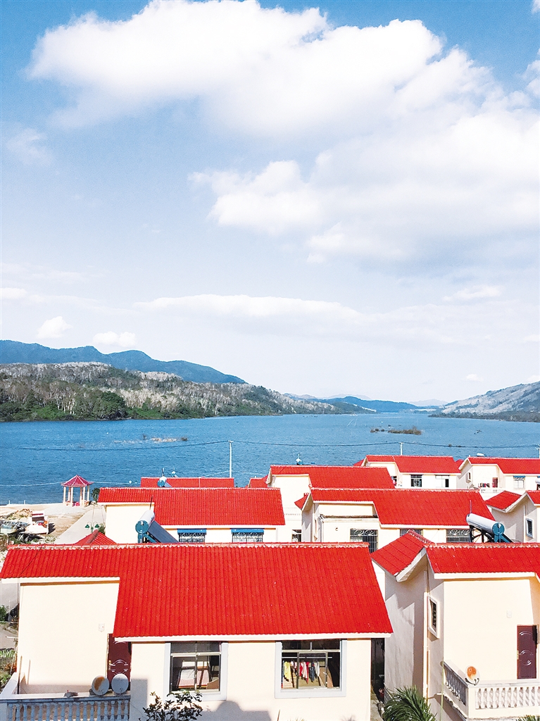 像琼中许多的村子一样,堑对村很宁静。村民们的房子建在河畔,它们都是风格统一的两层小楼房,黄墙红瓦透射出鲜活的朝气,家家户户都有一个白色栅栏围起的小院子,那里已是繁花盛放。三面环山,一面向水,河光山色浑然天成。