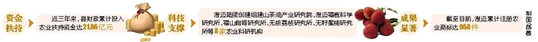 澄迈县农业局党委书记郑光伟说,澄迈县在服务农业品牌发展时,始终坚持为企业和创业者“提供保姆式服务”。在加大农业投入方面出台政策,将农业投入与财政支出和土地收益进行挂钩,把助农增收提升到了制度层面加以保障。近三年来,县财政累计投入农业扶持资金达21.86亿元。同时,加大政策扶持力度和坚持提供人才支撑,不断增强农产品的竞争力,促进农业增效、农民增收。