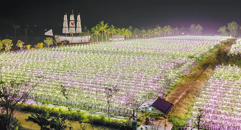 在占地36亩的火龙果园中,上万个补光灯让农庄的夜晚形成独特的景观,让晚上的农庄犹如一片闪耀的花海,游客可观赏到火龙果花绽放的景象。“今年春节7天假期,农庄共吸引了3500人次入园体验休闲采摘,实现旅游总收入17.5万元。”吕小东透露,农庄也在抓紧打造包括餐厅、民宿、鳄鱼观赏、鱼疗在内的二期工程。