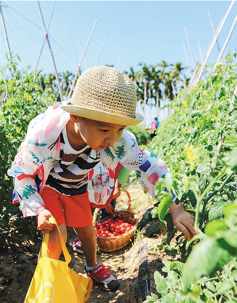 凤凰农庄不仅吸引了本地居民,还吸引了大量外地游客。当天,海口游客李安红与朋友在圣女果采摘园里尽情体验采摘乐趣。她告诉记者:“农庄可以享受返璞归真的田园生活,体验农耕文化,给身心放假。”
