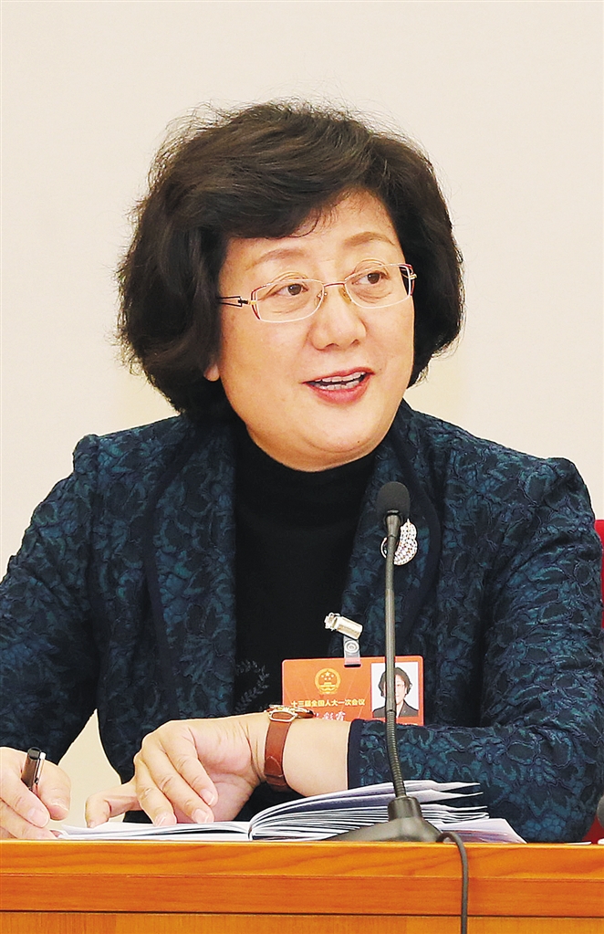 3月8日是国际劳动妇女节,参加十三届全国人大一次会议的海南代表团六位女代表依然忙碌,她们聚焦时事、关注民生、参政议政,成为两会一道靓丽的风景。图为吕彩霞、苻彩香、吕薇、吴月、杨莹、符小琴(从左至右)六位女代表正在发言。本报特派记者 李英挺 摄