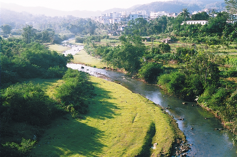 “每天傍晚,都会有很多人到营根河边散步。去年,琼中针对营根河进行了河道疏浚工程和河面拓宽工程,昔日湍急的水流汇入新修建的砌石沟道,见不到一点垃圾,洁净而美丽。”冯汉云说。