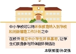 史贻云建议,尽快在全国中小学课程中增加生态文明建设或者环保实践课程,从小培养中小学生良好的环保意识和环保习惯,并适时就环保教育立法,以法律保障环保教育的实施。