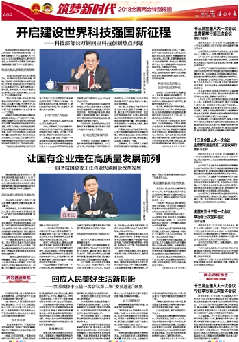 海南日报 筑梦新时代2018全国两会特别报道 004 2018-03-111 2018年03月11日 星期日