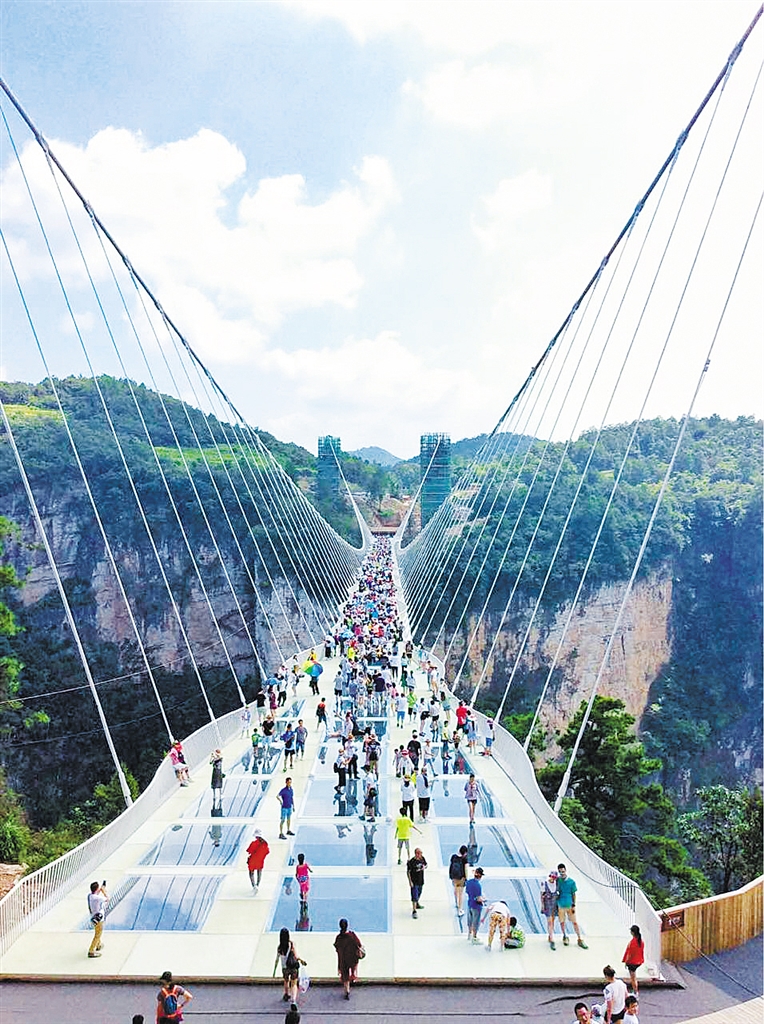 这座玻璃桥被美国有线电视新闻网CNN评选为全球11座最壮观的大桥之一,英国广播公司BBC也对这座桥进行了特别报道,吸引广大游客前去感受“薄如蝉翼却十足震撼”的极致体验。张家界大峡谷玻璃桥开放运营的一年时间内,总接待395万人次,纳税过亿元,取得巨大成功,为当地的经济和社会发展作出贡献。“当地政府对玻璃桥很满意,当地居民也因为旅游发展能够售卖产品,游客花一百多元就可以体验它,几乎满足了大家的需求,这让我非常开心。”渡堂海说。