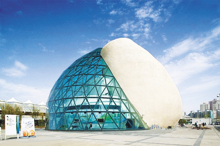 上海世博会以色列国家馆的海贝壳造型新颖独特,令人难忘。“海贝壳”由两座互相环抱的流线型建筑构成,一半是石头一半是玻璃,意味着一半是历史,一半是现代。“这个设计是按照阴阳、太极来设计的,从文化和技术的角度融合了中国和以色列犹太人的共同智慧。”渡堂海表示,它象征着人与人、人与自然、国家与国家之间安静的对话。