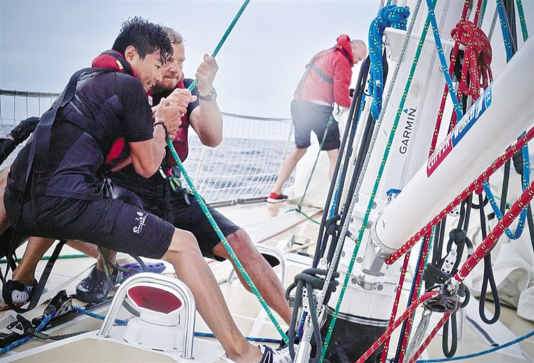 不怪三人耿耿于怀。从利物浦出发至今,“三亚号”乘风破浪,以总分暂居第一的傲人成绩,赢得多少荣光。这次的短暂失利,让“三亚号”连领奖台的边都没摸到。一直旁观的明浩都坐不住了:“接近三亚港的时候遇到风洞,两天后退20海里,眼睁睁看着“勇往直前号”从后面追上来,急得我脑袋起包!”