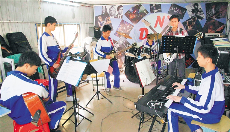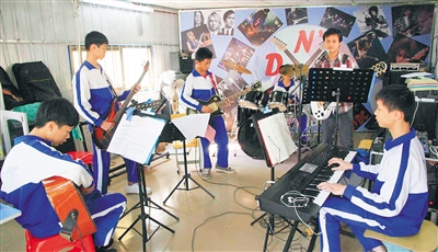“我平时虽然喜欢听音乐,但加入乐队前连五线谱都不会看。”吉他手刘泽邦有些害羞地说。经过学习,他已经能熟练地演奏出一首首乐曲。