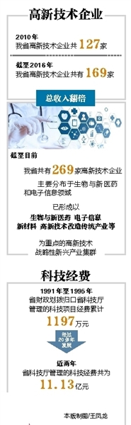 为了培育和扶持高企发展,海南通过建立科技企业孵化机构、众创空间、科技之家,积极推进高新区建设等,为海南省高新技术产业发展储备新鲜力量。2010年,海南国际旅游岛建设步入正轨,当年全省高新技术企业共有127家。8年过去了,在省委、省政府安排部署下,省科技厅坚持培育壮大高新技术企业队伍,目前全省高新技术企业数量翻了一倍,共有269家,有力地推动了海南高新技术产业发展。