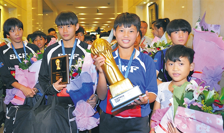 2017年8月,琼中女足再次获得“哥德堡杯”世界青少年足球赛U14女子组冠军,捧起金杯的姑娘们笑靥如花,“铿锵玫瑰”香飘世界。