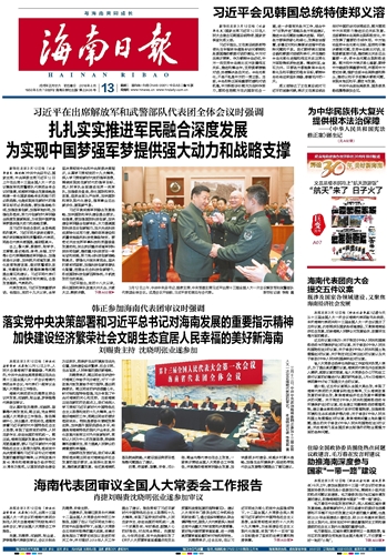 海南日报 头版 001 2018-03-131 2018年03月13日 星期二