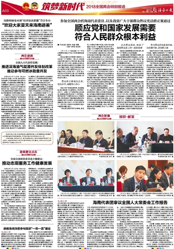 海南日报 筑梦新时代2018全国两会特别报道 003 2018-03-131 2018年03月13日 星期二