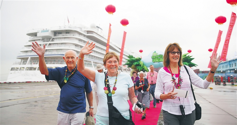 海口市口岸办相关负责人表示,邮轮已渐渐成为海口港口的“常客”。为了让口岸通关服务更优质、高效、便捷,口岸办建立了邮轮报告制度,信息联络等机制。目前邮轮旅客人均通关时间为8.1秒,其中入境通关时间6.5秒,出境通关时间9.6秒。