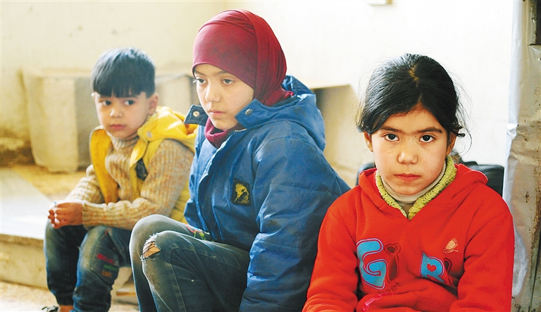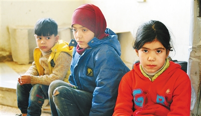 3月13日,撤离的叙利亚儿童在首都大马士革东古塔地区北部菲丁通道附近的一处临时安置点等待。根据俄罗斯军方和叙反政府武装达成的协议,146名平民当天从位于首都大马士革东郊的东古塔地区撤离。 新华社发