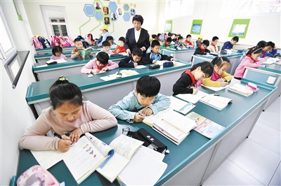 目前,大兴区有六所学校采取家长自愿、学生自愿、服务教师自愿的原则开展免费的“课后延时服务”,这项教育便民措施深受低龄学生和幼儿家长欢迎。新华社记者 李欣 摄