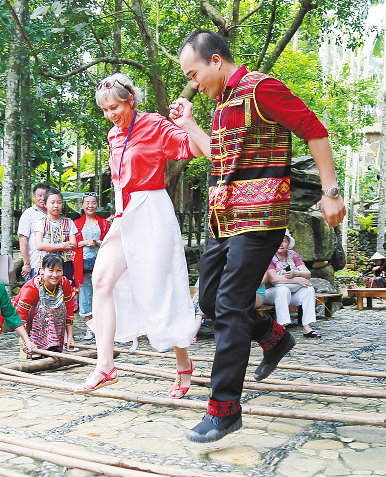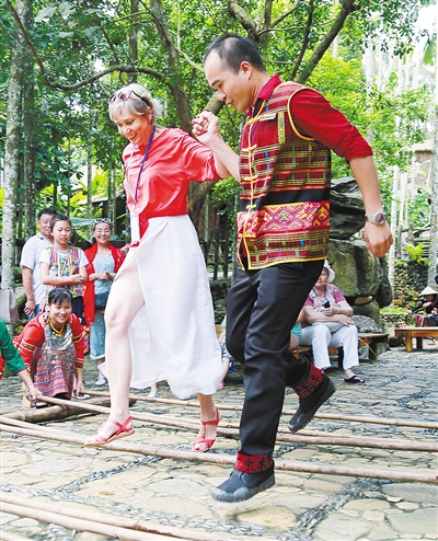 “槟榔谷之所以能吸引游客,就是因为拥有丰富的民族文化,包括绣面文身、黎锦、鼻箫、银器制作、陶器制作、编制工艺等,我们把老人从村里请到了景区里,景区里有了这些宝贵的文化载体,才是最纯粹的黎族苗族民俗文化。”吉贵说。