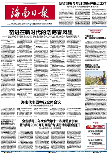 海南日报 头版 001 2018-03-171 2018年03月17日 星期六