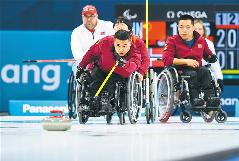 随后两局,挪威队拿下1分。第七局,挪威队出现两次击打失误,中国队趁机以5:4反超。第八局,挪威队二垒、三垒连续失误,中国队两只红壶形成牵制,挪威队依靠打甩艰难拿到1分,战成5:5平。
