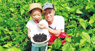 “游客们免费采摘桑葚,到了晌午留在村里的农家乐用餐,临走时,还会买上几斤桑葚酒。”陈世锦说,十年前,自己尝试酿制桑葚酒,并将酿制技术教给乡亲们,如今桑葚酒每斤售价约50元至80元,供不应求。