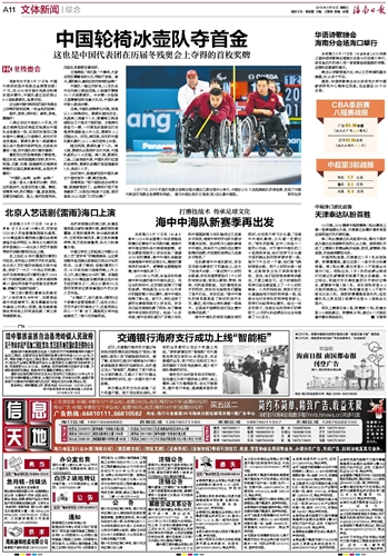 海南日报 文体新闻综合 011 2018-03-181 2018年03月18日 星期日