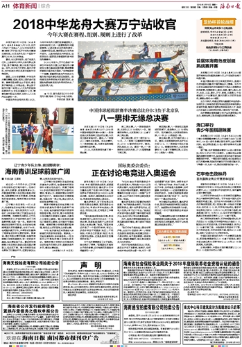 海南日报 体育新闻综合 011 2018-03-191 2018年03月19日 星期一