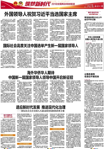 | 海南日报 筑梦新时代2018全国两会特别报道 004 2018-03-191 2018年03月19日 星期一 |