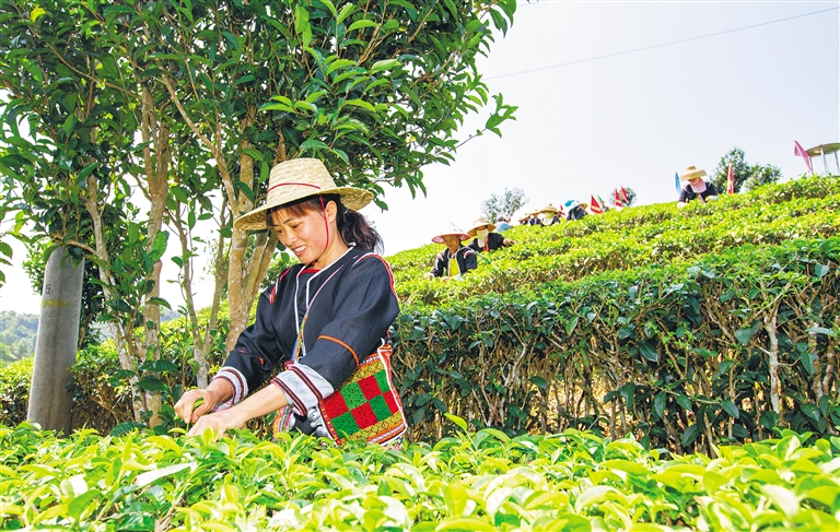 3月19日上午,2018年五指山早春茶采摘仪式在五指山市三月三广场举行,活动开启了2018年海南黎族苗族传统节日“三月三”主会场系列活动的序曲。本报记者 贾磊/文 本报记者 武威/图