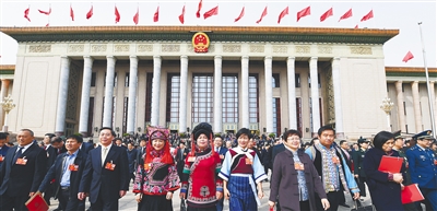 3月10日,人民大会堂中央大厅回荡起悠扬的民歌声。面对众多中外记者,云南普米族歌手茸芭莘那委员微笑坦言:“我要用少数民族自己的方式歌颂伟大的新时代。”